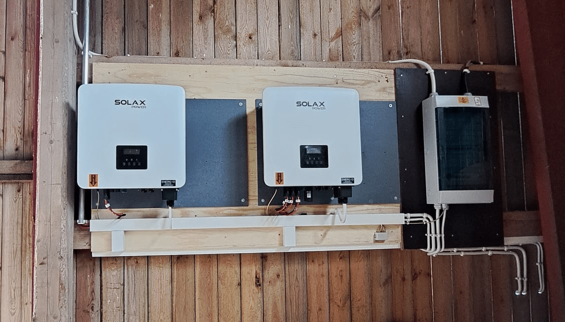 Kaksi Solax X3-Hybridi-invertteriä asennettuna.